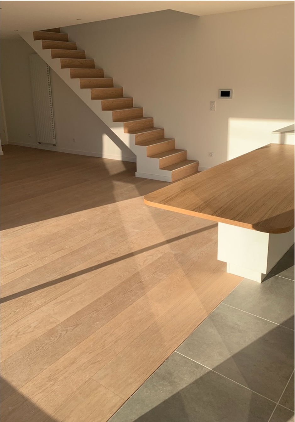 Le parquet chêne contrecollé Lindura Nature verni mat se distingue par ses lames très larges et sa grande résistance à l’usure. Grâce à la technologie Lindura et à son vernis mat haute performance, il convient parfaitement aux espaces de vie intensifs tout en conservant l’esthétique naturelle du chêne.